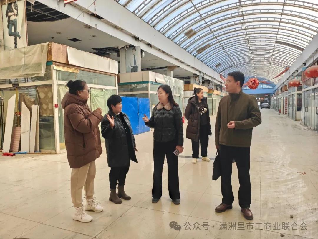 近日,满洲里市委统战部副部长、工商联党组书记韩军、市投资促进中心主任牛大伟一行就义乌商贸城闲置资产盘活事宜与市女企协会长、招商大使林兆霞,市女企协副会长、满洲里格韵酒店管理有限公司董事长任珠英进行了项目调研对接。