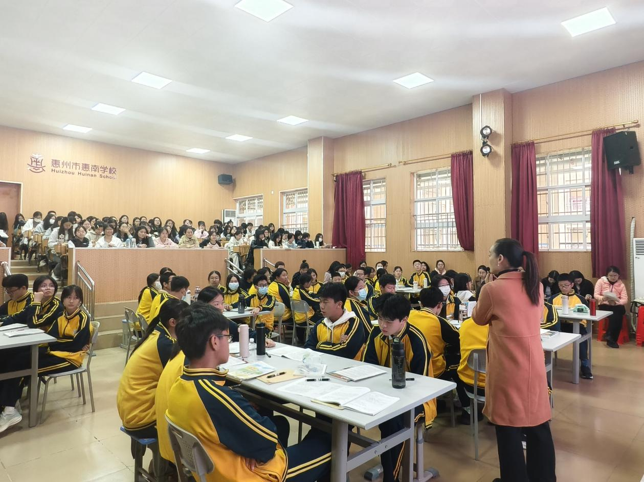 课后,各位老师对本节课进行了研讨。崔绍怀教授提到:这是一节好课,全体同学都站起来说,一人说一分钟,教师把时间交给学生,体现了以学生为中心的教学理念,很好地训练了学生的语言表达能力和面对公众发言的心理素质。在评课环节,惠州市惠南学校初中部各年级的语文教师纷纷发表了对本节课的积极评价和富有操作性的改进意见与建议。